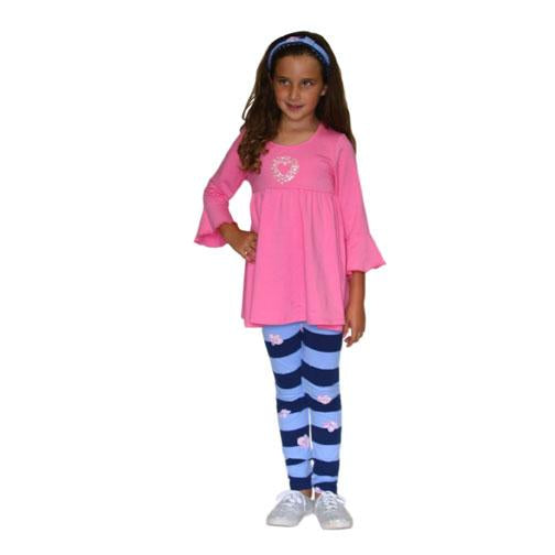 Pink and navy the perfect combination, add a little dazzling heart to make every girl shine. This classic baby doll top fits all girls and is simply paired with our dancing plumerias and stripes..