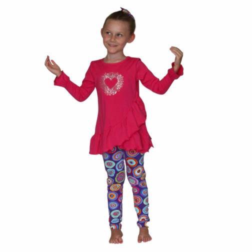 Purple and pink is the perfect combination in this star studded Mandy Tunic top and galaxy leggings.This cutaway ruffle hemline adds just enough style to give this tunic a little flare, perfect for over leggings or jeans.