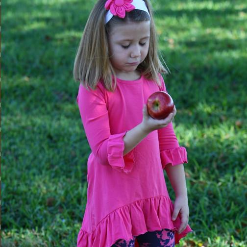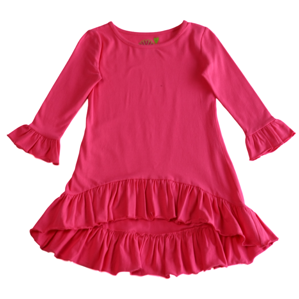 Add a touch of drama to her style in our Sandy cutaway top with ruffle hemline and sleeves. Just enough style to compliment our Lucky pant or colorful Peggy leggings.
