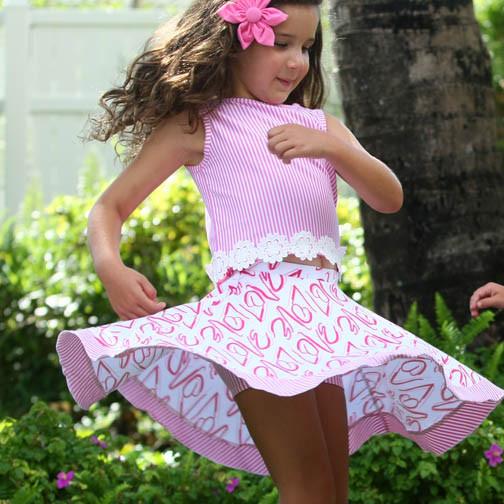 Take a spin in our Annie On The Go skort, a style that is sure to move as much as she does. This full circle skirt with coordinating shorts underneath is girly, fun, and cart-wheel friendly! The Annie skort in Lovely lets her twirl to her heart's content.
