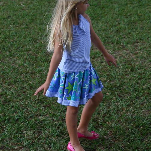 Take a spin in our Annie On The Go skort, a style that is sure to move as much as she does. This full circle skirt with coordinating shorts underneath is girly, fun, and cart-wheel friendly! The Annie skort in Starfish lets her twirl to her heart's content.