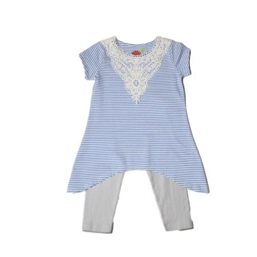 Stylish and sweet is this peri stripe Belle Tunic with white capri leggings. Detailed with lace detail at the neckline makes this capri set perfect for your fashionista.