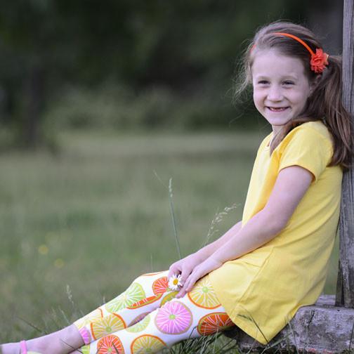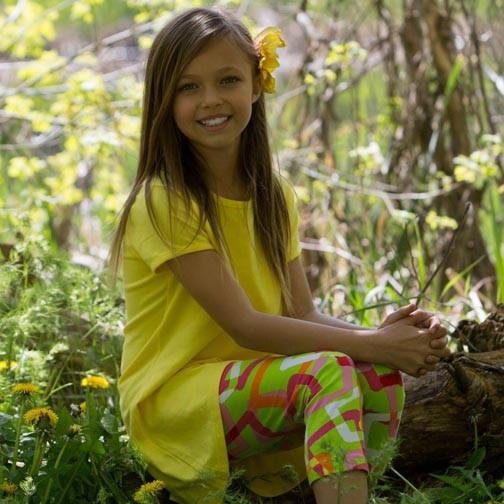 Layered with style and a touch of lace, the Kel Belle top is sure to be a favorite in her wardrobe. Paired with our versatile Sweet Pea Capris, this top adds a little bit of flair to her everyday look. The Kel Belle top in Citrus is just what she needs to be the belle of the playground.