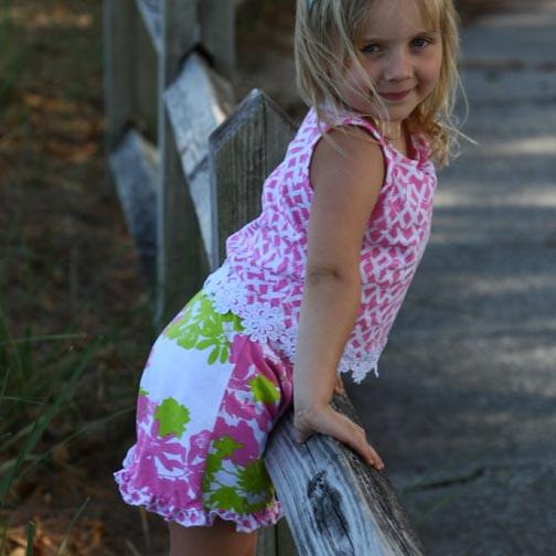 Summertime fun is this classic ruffle short with just enough ruffle to add a little skip in your step. Enjoy fun fabric combinations to pair with our Summer Swing Top or our Baylor Racerback Tank to make every girl fashionably sweet. Girls are doing cartwheels for our easy to wear pull on elastic waist Little Truffle Ruffle shorts in Garden Party.