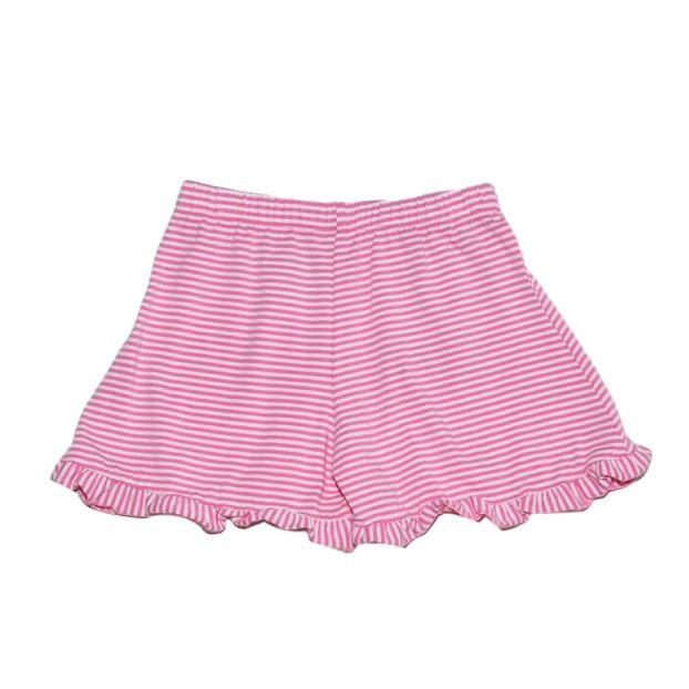 Summertime fun is this classic ruffle short with just enough ruffle to add a little skip in your step. Enjoy fun fabric combinations to pair with our Summer Swing Top or our Baylor Racerback Tank to make every girl fashionably sweet. Girls are doing cartwheels for our easy to wear pull on elastic waist Little Truffle Ruffle shorts in Pink Stripe.