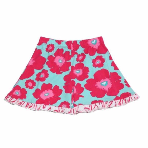 Summertime fun is this classic ruffle short with just enough ruffle to add a little skip in your step. Enjoy fun fabric combinations to pair with our Summer Swing Top or our Baylor Racerback Tank to make every girl fashionably sweet. Girls are doing cartwheels for our easy to wear pull on elastic waist Little Truffle Ruffle shorts in Wildflower.