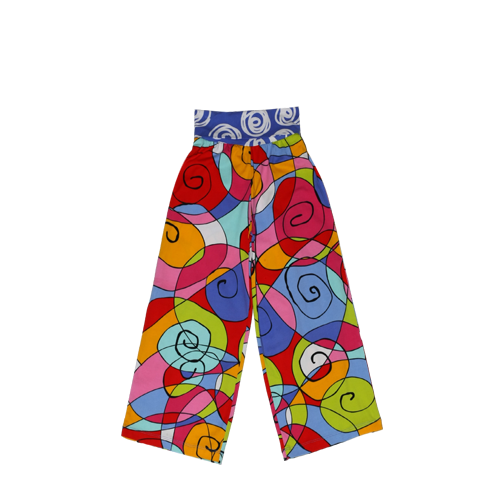 Add a little comfort to her style with our full leg palazzo pant in colorful prints a solids. Sit back and relax in style in our Picasso Palazzo Pant Amazed. This geometric print is full of all of your favorite colors, pink, aqua, peri, red and lime with black outlines to insure that every color pops..