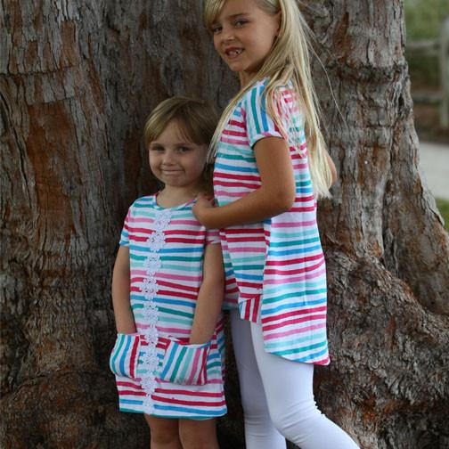 Girls love a pocket and our Polly has two! With a touch of lace, this easy to wear classic shift dress is great for a day out on the town. Pick a Polly in Festive for play, parties, and fun!