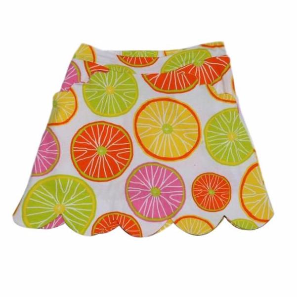 It's okay to be a little sassy in our a-line scallop hem skort. Scalloped pockets and shorts underneath give this style both girly and sporty features, perfect for any girl. Our Sassy skort in Citrus pairs perfects with the Baylor racerback top in coordinating prints and solids.
